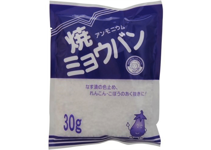 スーパーなどで売っている「焼きミョウバン」「ミョウバン」など、食品として売られているミョウバンを用意します。100円前後で購入出来ます。